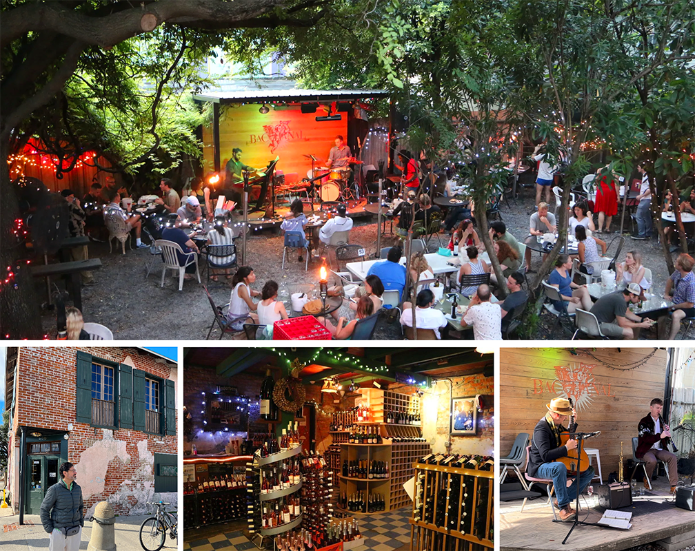 ↑ While in the Bywater district, we wandered over to Bacchanal Wines & Spirits. This gem is an open-air oasis, the kind where you literally walk through a treasure trove of wines, selecting your perfect bottle (or two!). Stepping outside, you’re greeted by the sweet melodies of live jazz and a menu boasting delicious Mediterranean bites.