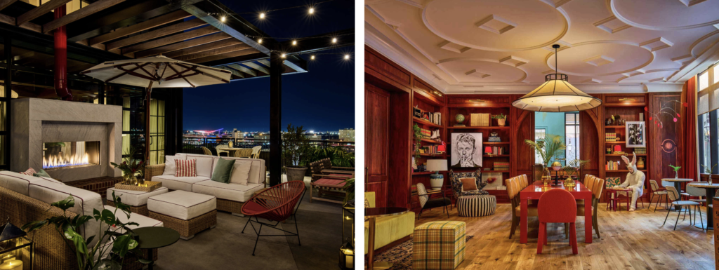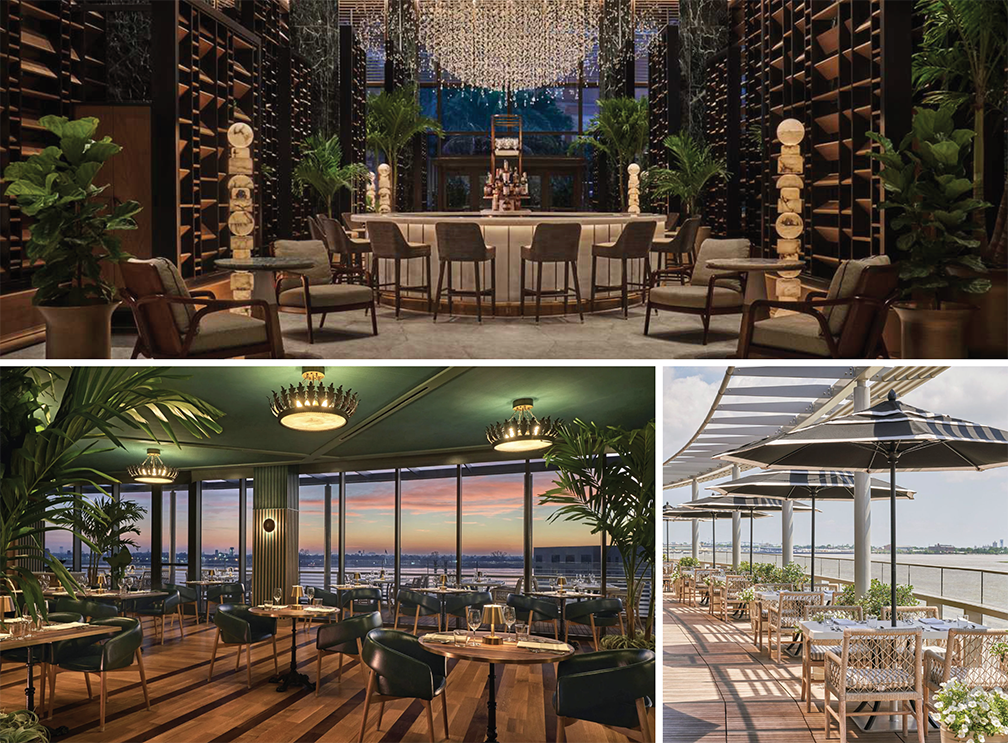 ↑ Our first drink stop was at Four Seasons’ Chemin à la Mer – a must for its legendary Mississippi views. But before stepping onto the balcony, we couldn’t resist diving into the hotel’s gorgeous main bar. Imagine a jewel box come to life – shimmering chandeliers cast a warm glow on plush armchairs nestled around intimate tables. Walls lined with vintage travel posters hinted at exotic adventures, while the air buzzed with a low murmur of anticipation. But the true pièce de résistance was the stunning bar itself, artfully crafted from onyx and adorned with delicate gold detailing. It was a prelude to the magic awaiting us – a decadent sip before surrendering to the breathtaking Mississippi sunset from the balcony.