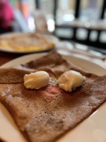 Wandering through Old Quebec, we stumbled upon the most charming little crêperie, Au Petit Coin Breton, and it quickly became a favorite. Stepping inside felt like being transported to a cozy cottage in Brittany; the rustic décor and warm lighting created such a welcoming atmosphere. The smell of freshly made crêpes filled the air, instantly making our mouths water. We were all craving something different, and Au Petit Coin Breton delivered perfectly. They specialize in buckwheat crêpes, which gives them a wonderful nutty flavor and a slightly different texture than traditional wheat crêpes. My son, ever the purist, went for the classic sugar crêpe – simple, but perfectly executed, and the buckwheat added a lovely depth to the simple sweetness. I opted for a savory galette (also buckwheat, of course!) topped with perfectly poached eggs, which was absolutely divine. My husband, Jesse, in his usual fashion, decided on a salad (go figure!), but even he couldn’t resist sneaking a bite of our crêpes. They were thin, delicate, and cooked to perfection. It was more than just the food, though; it was the whole experience – the cozy atmosphere, the friendly service, and the delicious aroma of crêpes cooking. It felt like a little slice of France in the heart of Quebec City, and it was the perfect spot for a delightful and satisfying meal. We’d absolutely recommend it to anyone looking for an authentic Breton treat.