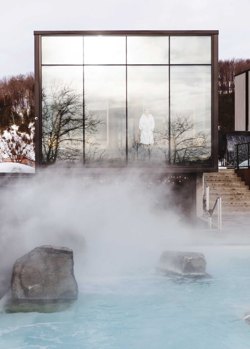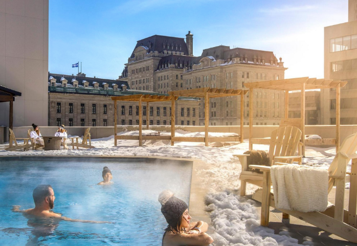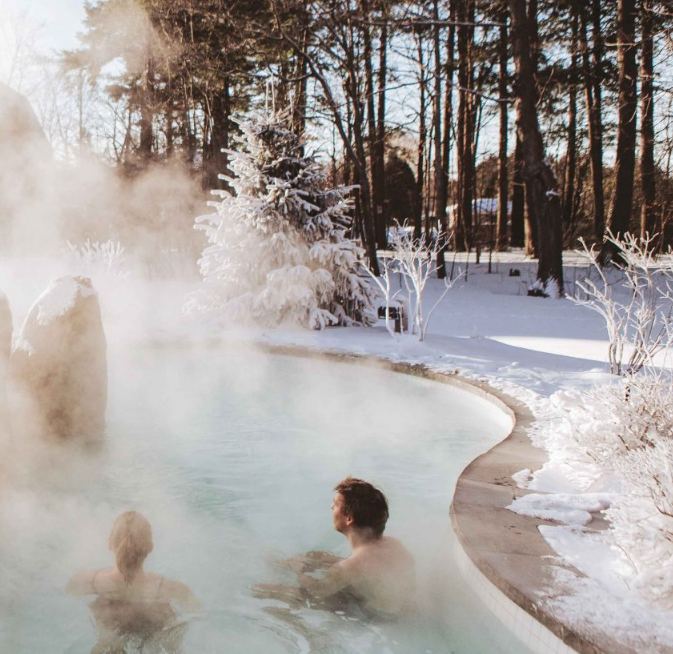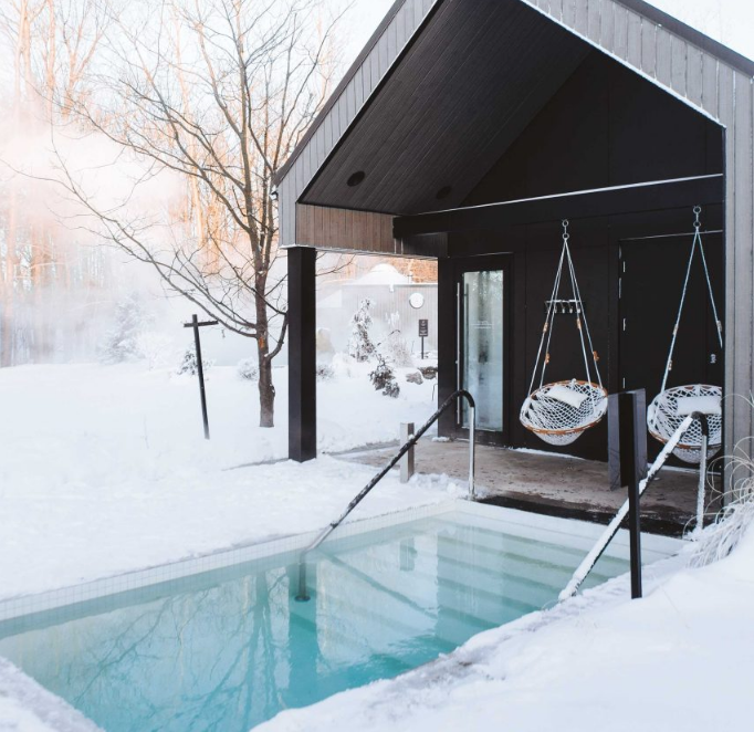 My day at Strom Spa in Quebec was like entering another world. . While my son and husband hit the slopes, I treated myself to a day of pure relaxation. Stepping into the spa felt like entering a tranquil winter wonderland; the snow-covered grounds and steaming pools created such a peaceful atmosphere. It was so nice to have some time all to myself. I started with the thermal pools, letting the warm water ease my muscles. What made it even more special was that I could watch the Saint Lawrence River flowing by as I relaxed – it added another layer of serenity to the experience. Then, I braved the cold plunge – definitely invigorating! I spent a good amount of time just floating in the various pools, completely losing track of time. I let the warm waterfalls cascade over my head, which was surprisingly soothing. I even found a quiet spot with hammocks and spent some time swinging gently, just enjoying the quiet and the beautiful scenery and watching the river drift by. It was the perfect escape, a chance to truly unwind and recharge. I left feeling completely refreshed and relaxed, ready to rejoin my family.